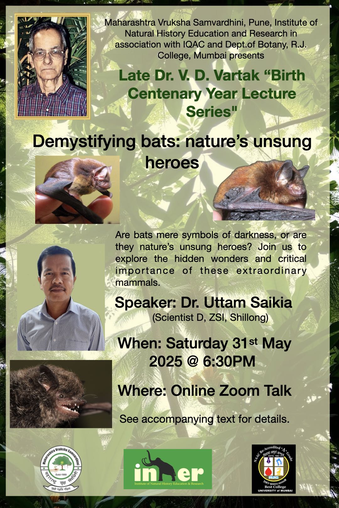 नाजुकशा जाईजुईपासून ते टपोऱ्या फुलांच्या सावरीचे संपुर्ण सौंदर्य दाखविणारे छायाचित्र अतिशय दुर्मिळ. पण तेच आपल्या चित्रकलेतून कुशलतेने ऊलगडतात प्रसिद्ध वनस्पती चित्रकार श्री. परेश चुरी. यांचे मंगळवार दि. २९ एप्रिल २०२५ रोजी संध्याकाळी ६:३० वा झूमवर व्याख्यान. more