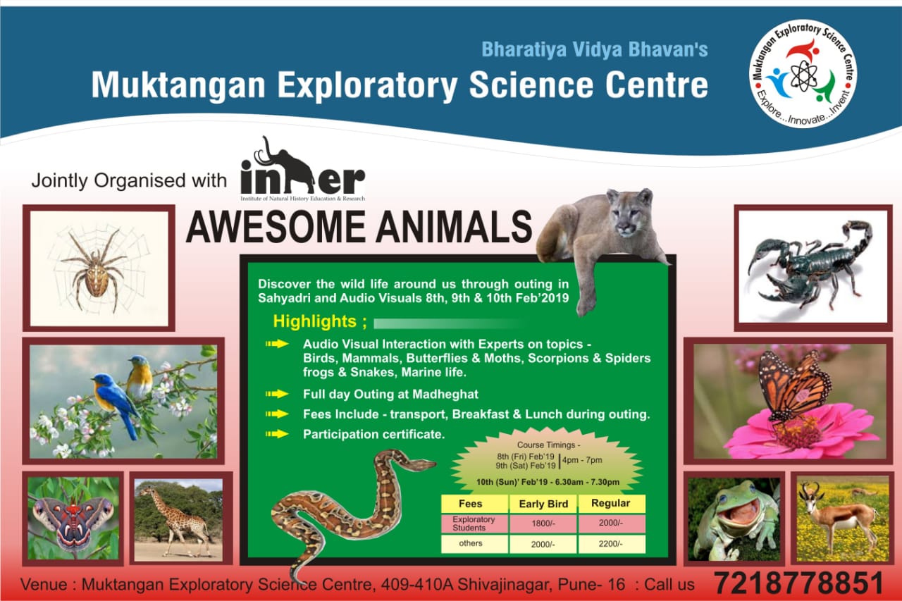 Opportunity for the curious Punekars to get to know our insects and other arthropods. Your overwhelming response to our previous arthropod courses has encouraged us to continue with this informative and exciting short course on the beautiful butterflies and deadly scorpions. This introductory course covers all kinds of insects and other arthropods that inhabit our forests, farms and even our homes. Eminent experts will be speaking on array of topics at this course which is open to all. Will be held from 27 September to 6 October 2018 at Muktangan Exploratory Science Centre, Pune. Talks will be on weekday evenings and includes a field trip with experts to Tamhini/Garudmaachi on Sunday. more